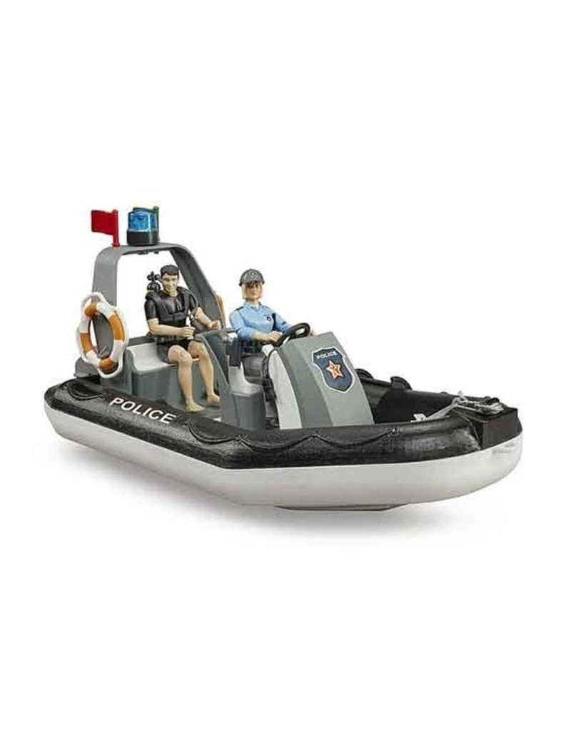 Grote speel combinatie van een politieauto met boot op een trailer.