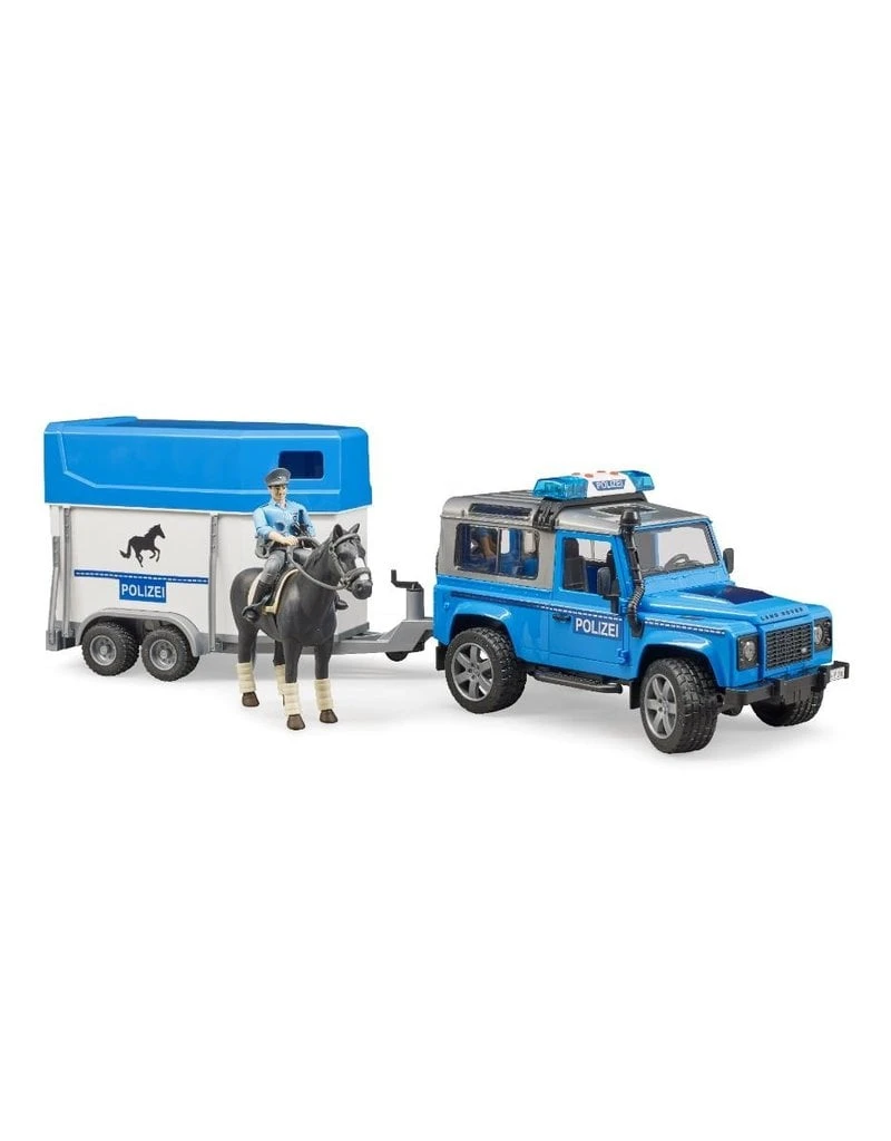 Grote speelgoed politieauto compleet met trailer, paard en politieman.