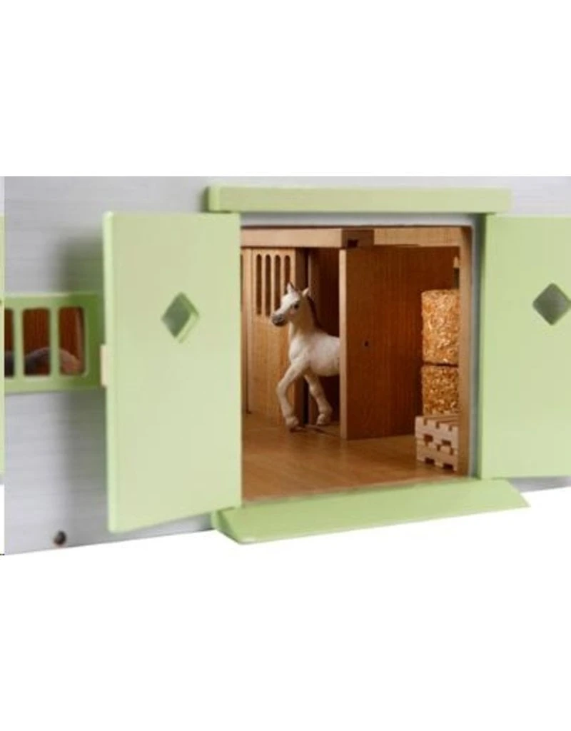 Geweldig paardenstal in schaal 1:32. De kleuren roze en wit spreken de meeste meisjes wel aan.