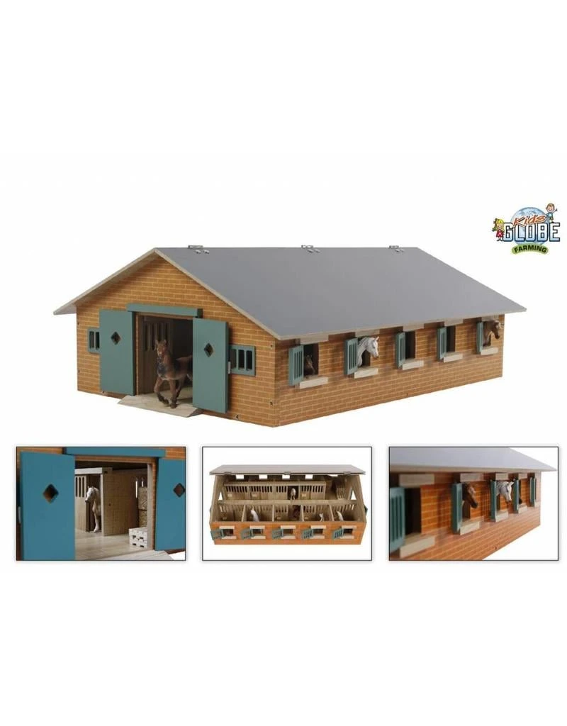 Kids Globe Farming 610544 -Paardenstal met 9 paardenboxen 1:32
