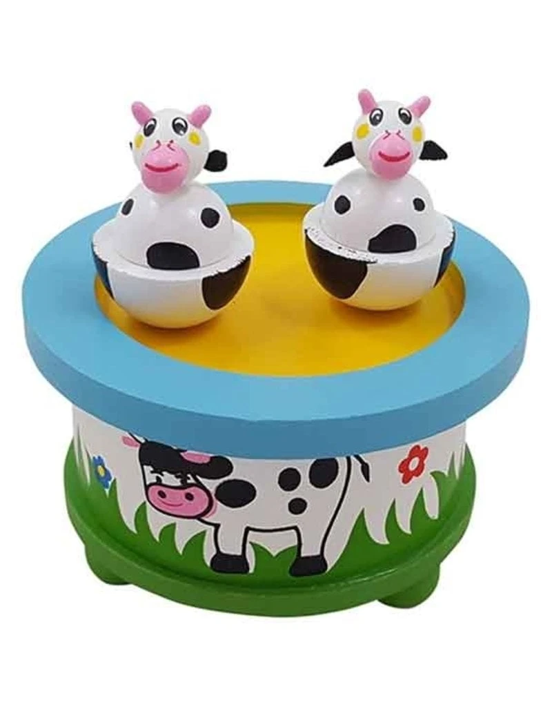 Schattig muziekdoosje waarop de koeien dansen als je hem aandraait.