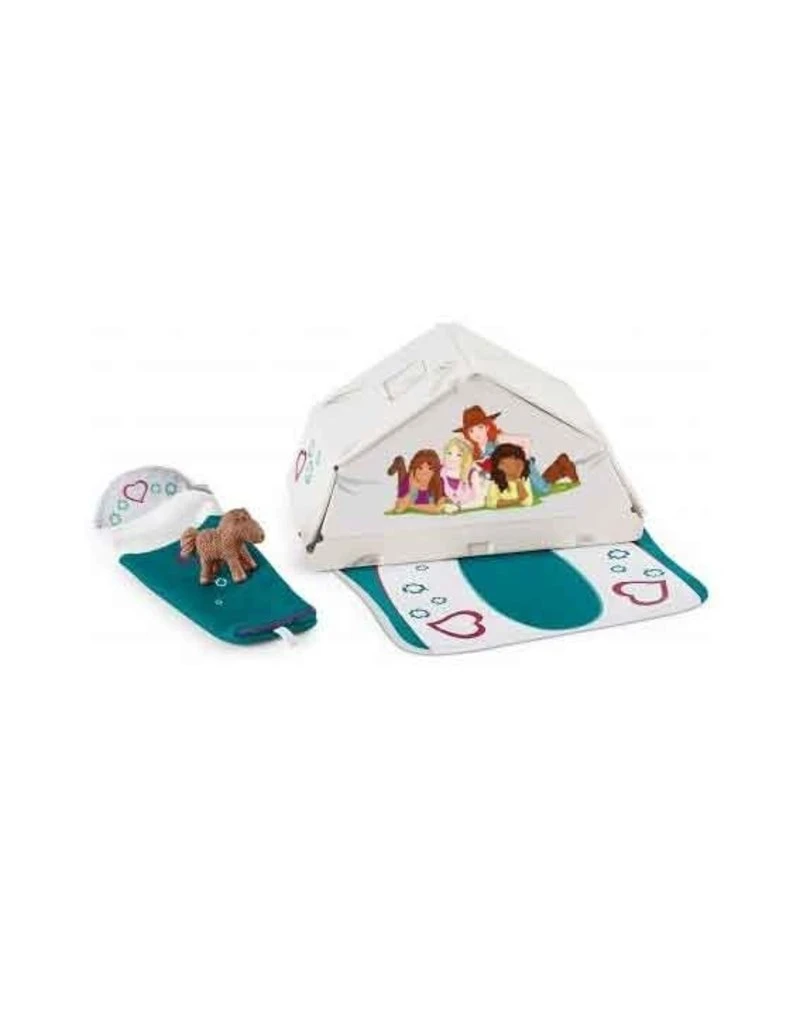 Leuke set, bestaande uit een tent, slaapzak en paardenknuffel..