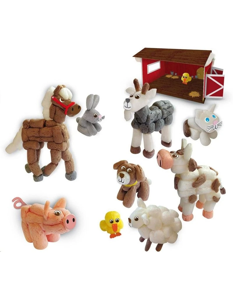 Met deze set knutsel je een compleet boerenerf in elkaar van funmais. Maak een koe, geit, schaap, konijn, varken, hond, kat en kippen. Met de leuke plakogen komen ze echt tot leven. Plaats ze in de bijgeleverde achtergrond voor uren speelplezier. Natuurlijk kun je ook je eigen fantasie gebruiken om nieuwe creaties te maken.