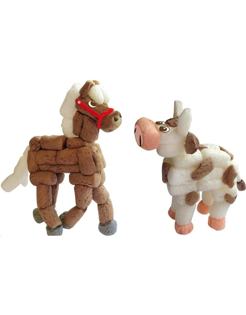 Bijzonderheden: de stukjes zijn gemakkelijk aan elkaar te plakken met een beetje water; gemaakt van echt maïs; gemakkelijk te snijden met bijgeleverde mesje (ook gemaakt van echt maïs); maïsproducten zijn biologisch afbreekbaar; leerzaam en educatief speelgoed; stimuleert bij kinderen de ontwikkeling van de 2D- en 3D-vaardigheden, de creativiteit en het zelfvertrouwen.