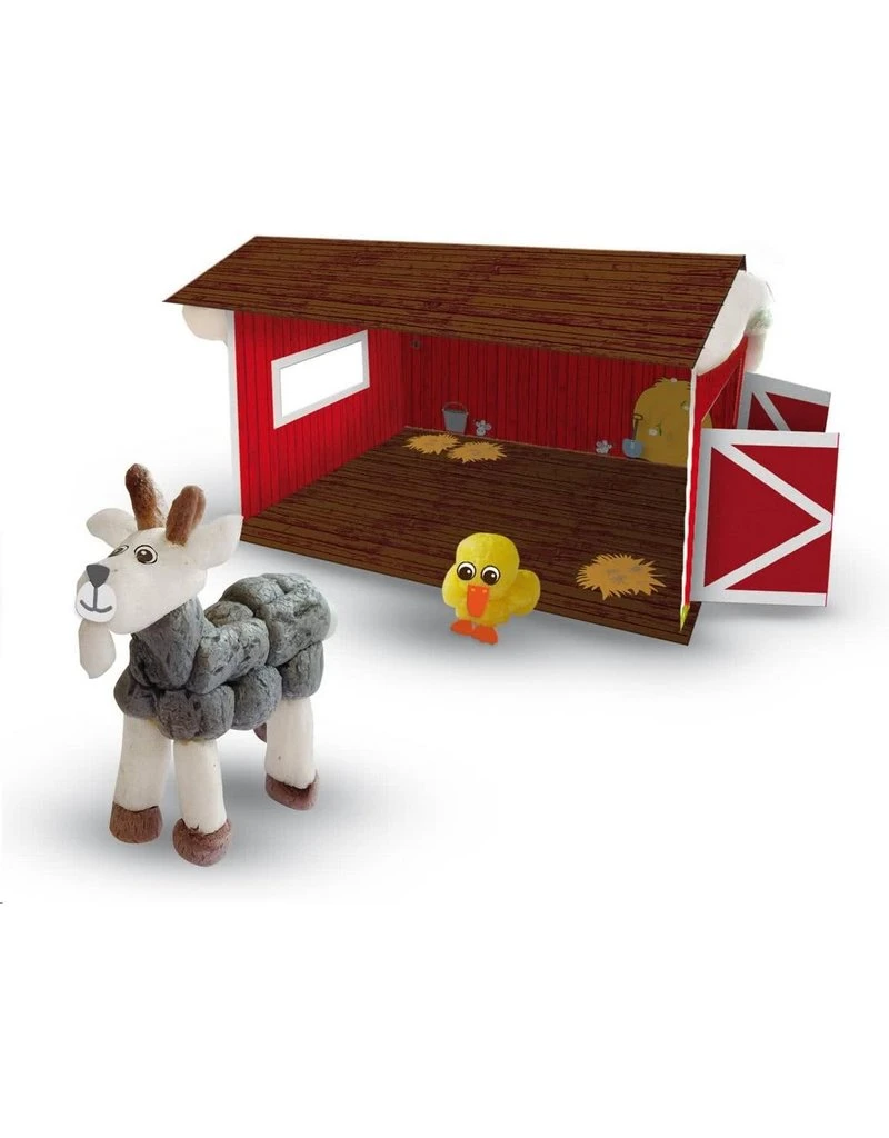 Inhoud doos: 400 stuks funmaisvlokken, 3D boerderij van karton, drukwerk details, mesje, sponsje, handleiding