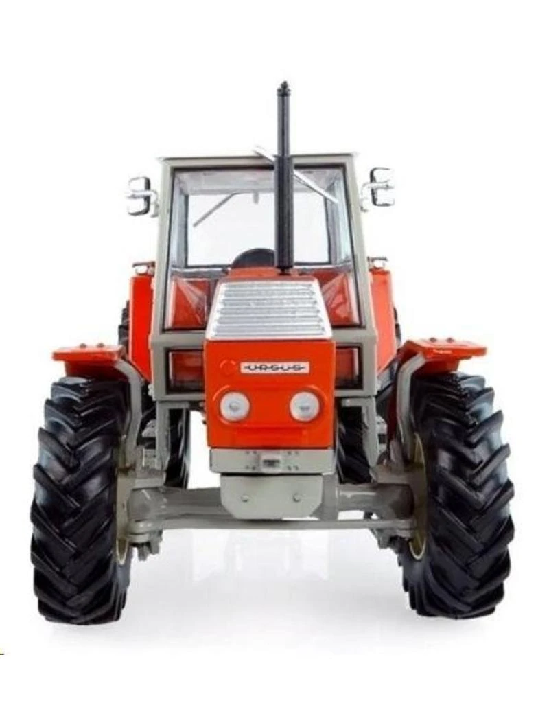 Gedetailleerd gegoten metaalmodel Ursus 1204 4WD-tractor in rood met gesloten cabine, interieur en originele stickerdetails, voorwielbesturing, achterhef.