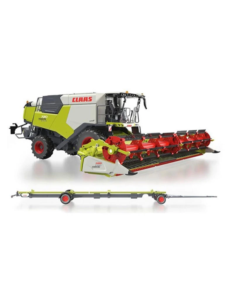 Gedetailleerd model maaidorser, combine. Dit model wordt geleverd met een maaibord op een eigen aanhanger.